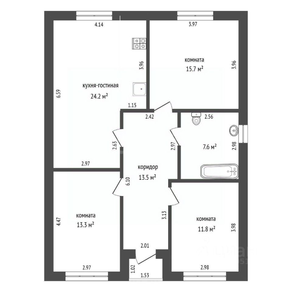Общая площадь95 м2