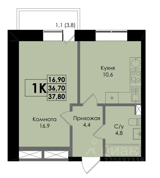 Общая площадь37,8 м2