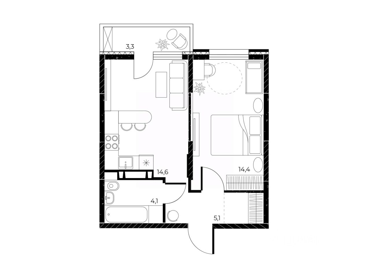 Вы можете выбрать один из вариантов отделки: Черновая, Предчистовая (white-box), Ремонт под ключ (2 стилевых решения).