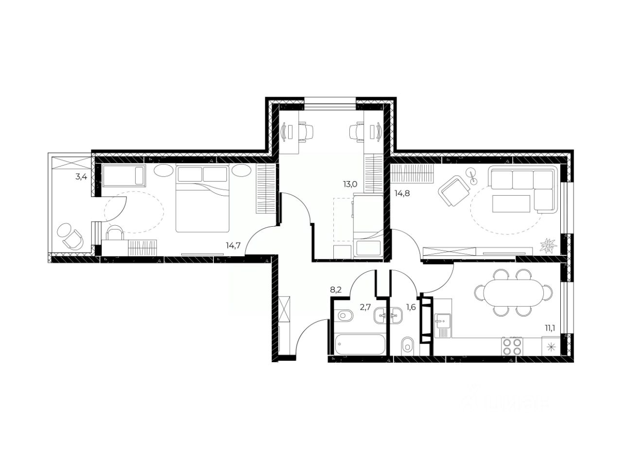 К Вашему выбору представлена коллекция планировочных решений: ''бабочки'', ''трансформеры'' квартиры с расположением комнат на 3 стороны света с кухнями-гостиными с раздельными с/у с собственными гардеробными