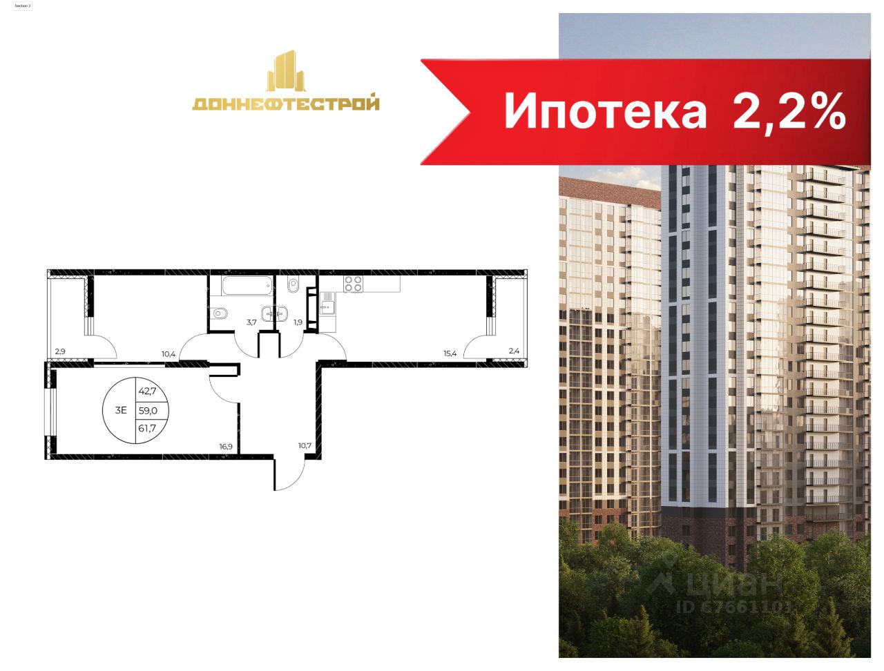 Общая площадь61,7 м2