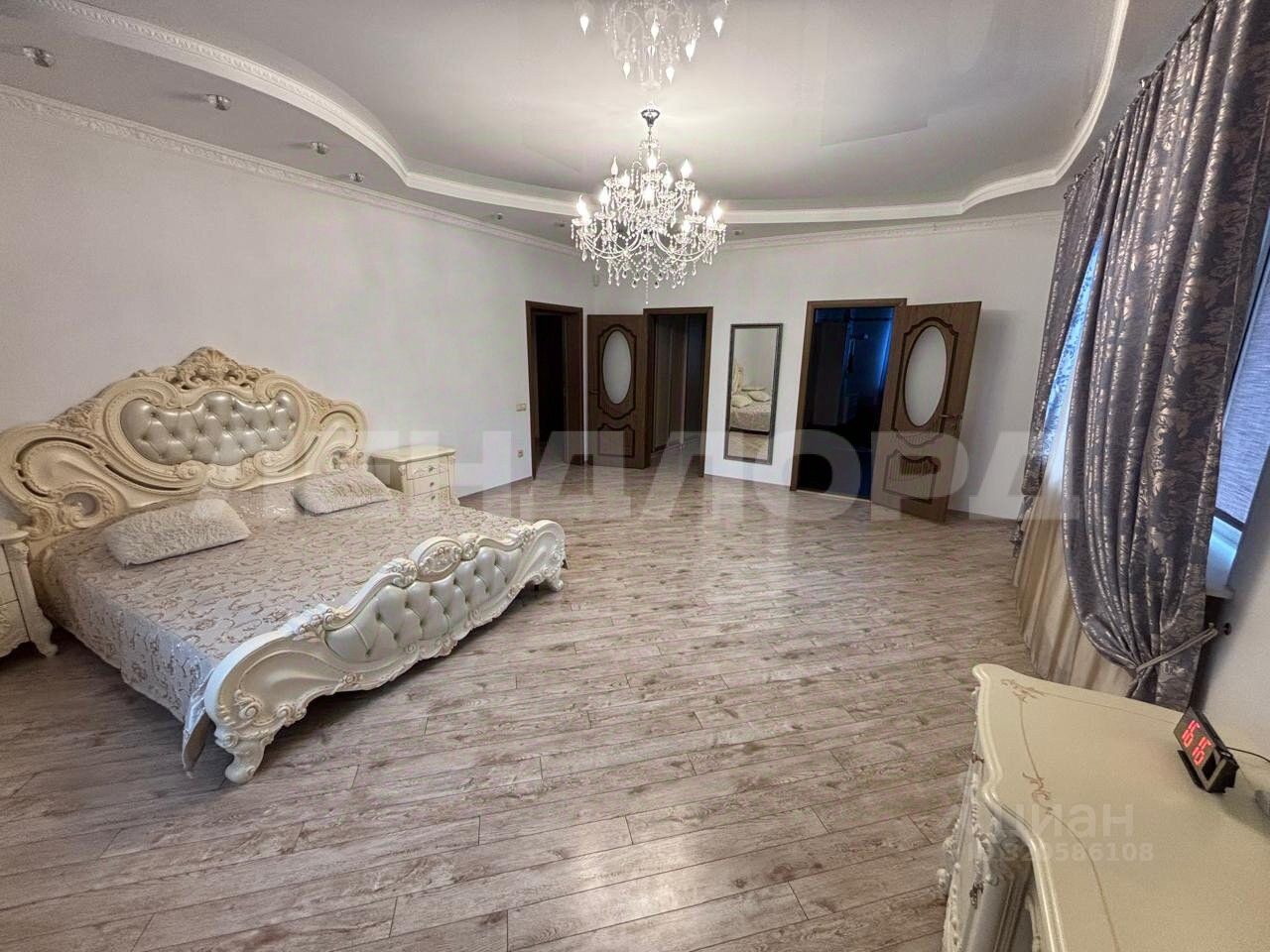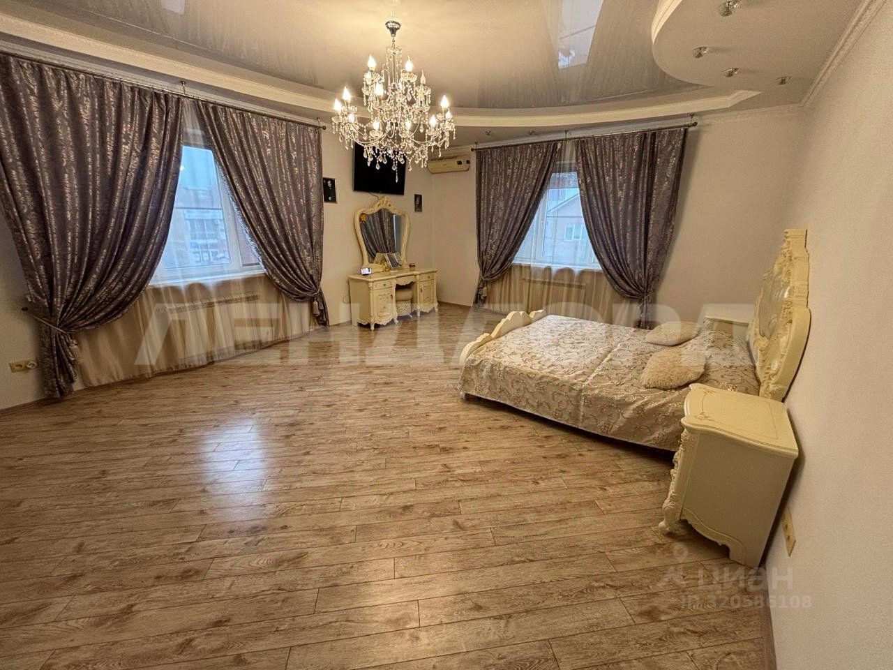 Дом двухэтажный кирпичный, три уровня. Первый этаж кухня-столовая и одна спальня. Второй этаж три спальни. Цокольный этаж: бойлерная, игровая, кладовая, постирочная, сауна. В доме 4 санузла. Въезд на три машины.