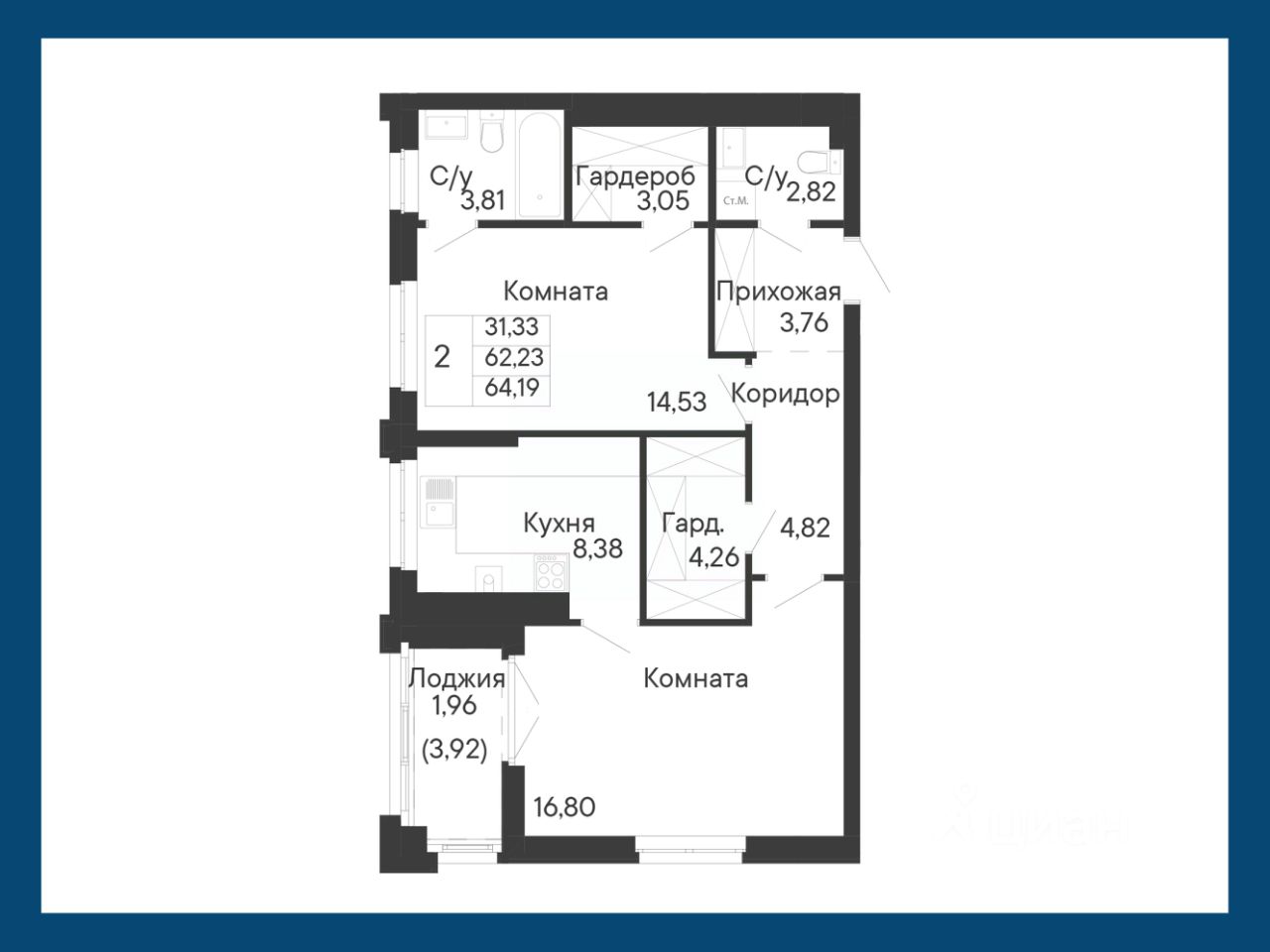 Общая площадь64,19 м2