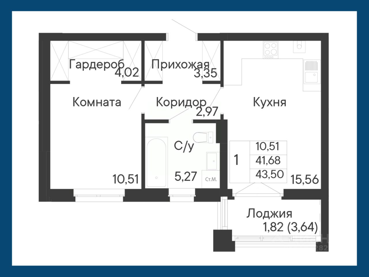 Общая площадь43,5 м2