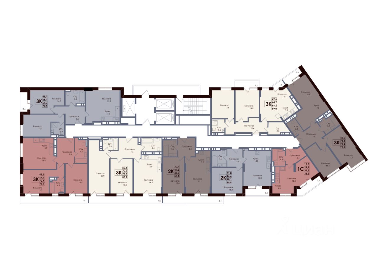Общая площадь49,7 м2