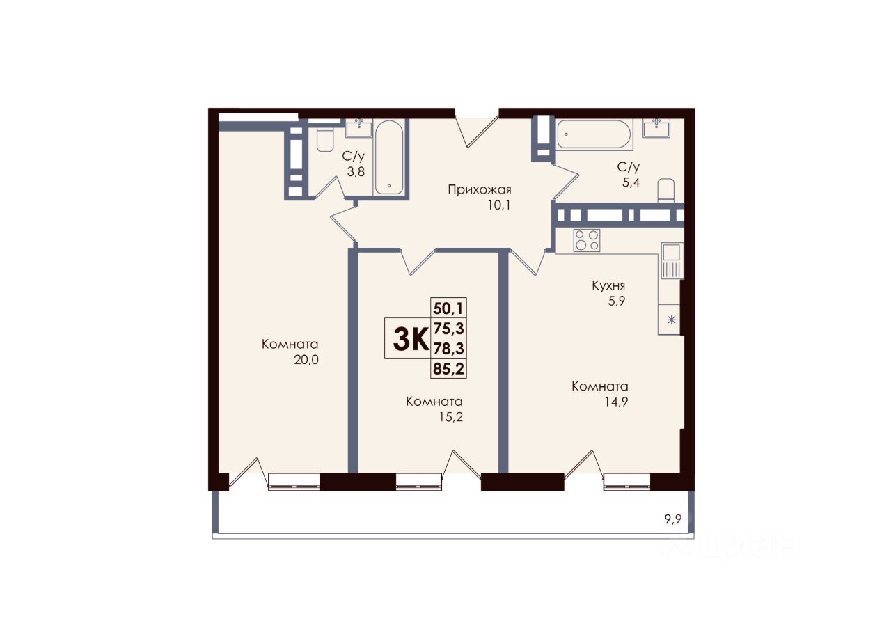 Общая площадь78,3 м2