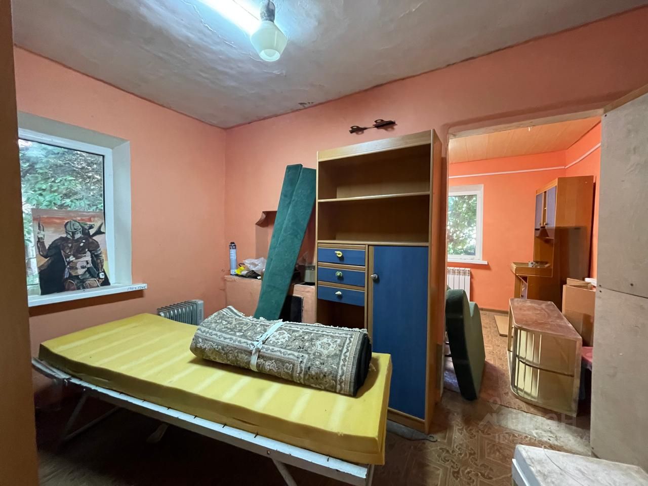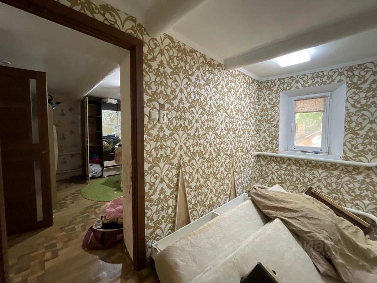 Дом саманный, 3 комнаты, коридор и место под сан. комнату, отопление газовый котёл.