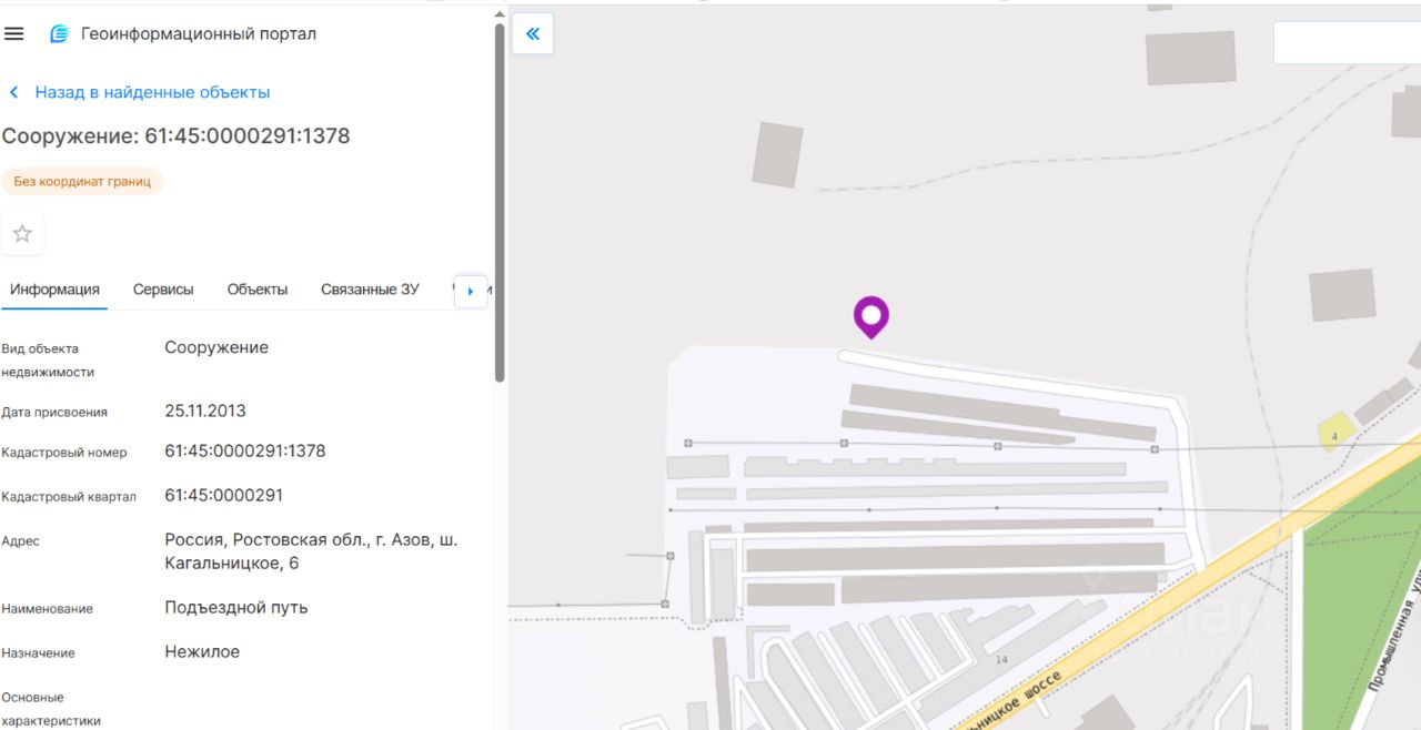 Сведения об основных характеристиках объектов недвижимости: торгово-складские помещения, площадью: 33,5 кв.м., 138,4 кв.м., 649кв.м., повышенная ж/д ветка (не эксплуатируемая) 100м/п.