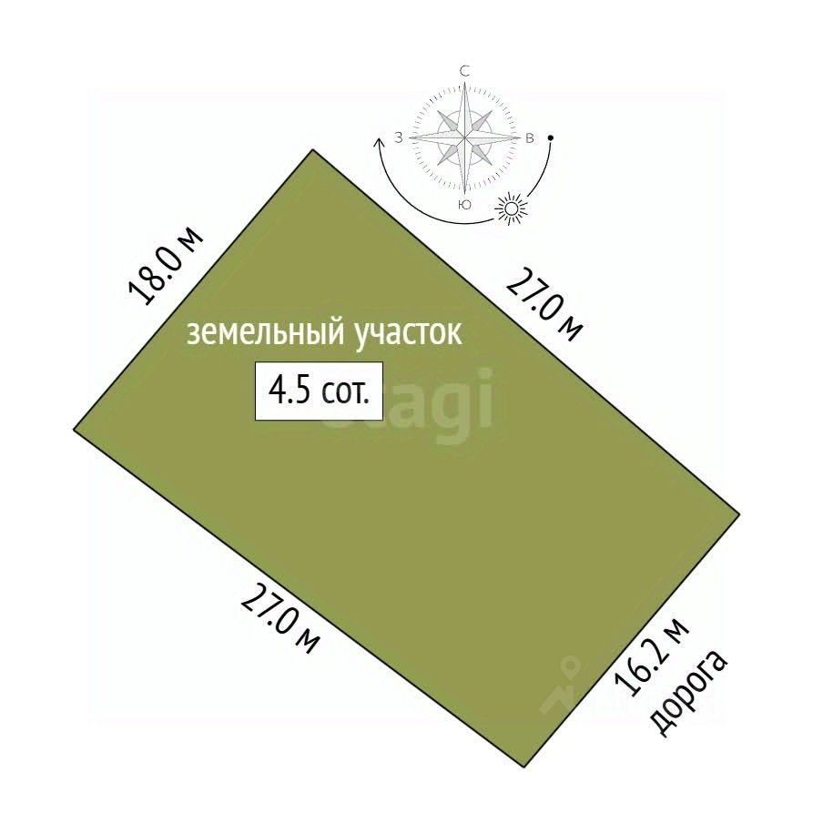 Участок ровный прямоугольной формы, без уклона, фасад 16 м.