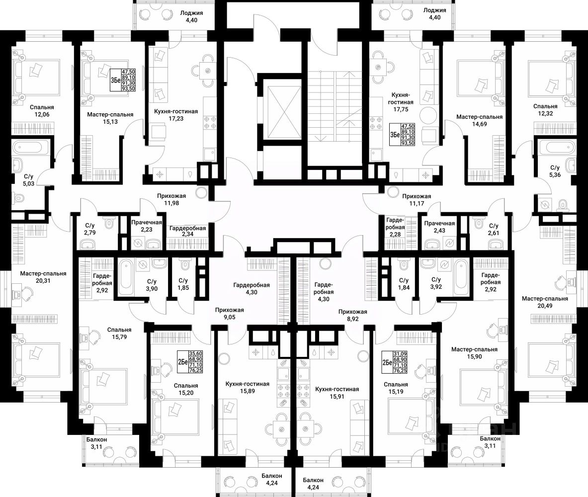 О квартире: — кухня-гостиная 17,8 кв.м. с выходом на лоджию — 3 просторные спальни — прачечная — 2 санузла: совместный и гостевой — гардеробные — 4 этаж — потолки 3 м.