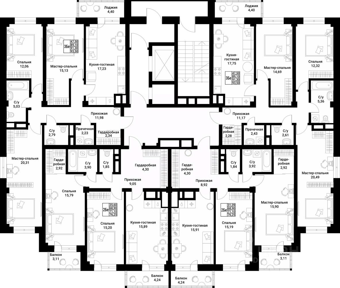 О квартире: — кухня-гостиная 17,8 кв.м. с выходом на лоджию — 3 просторные спальни — прачечная — 2 санузла: совместный и гостевой — гардеробные — 5 этаж — потолки 3 м.