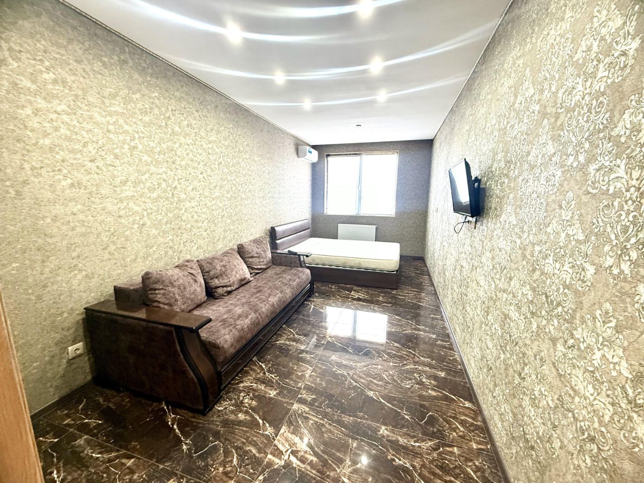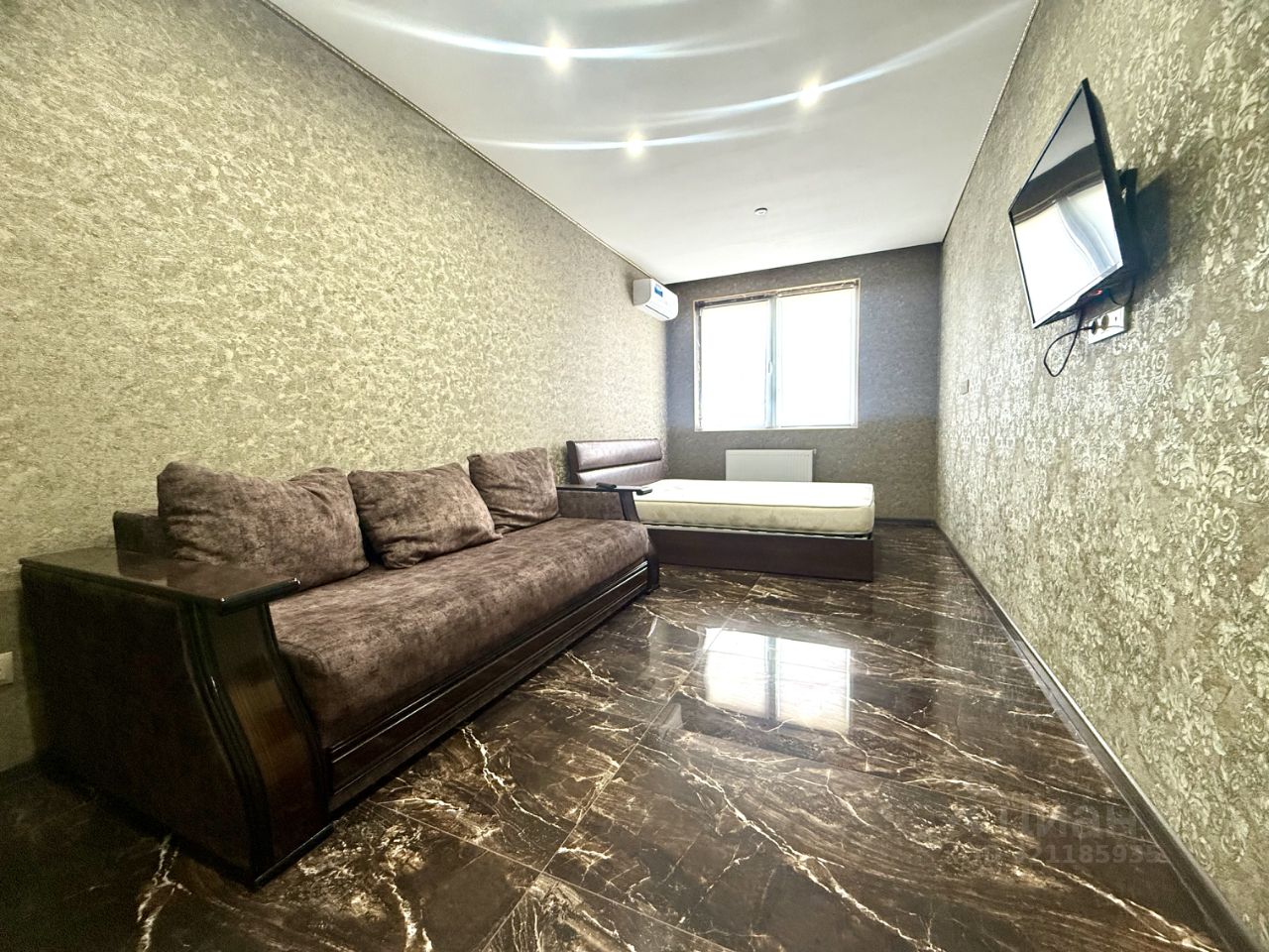 В квартире есть всё необходимое для комфортного проживания. В комнате и на кухне установлена современная мебель. К вашим услугам кондиционер, холодильник, телевизор и стиральная машина. Ванная комната оснащена ванной - джакузи , что позволит вам расслабиться после рабочего дня. Лоджия добавляет дополнительное пространство для отдыха и работы , есть стол и диванчик .