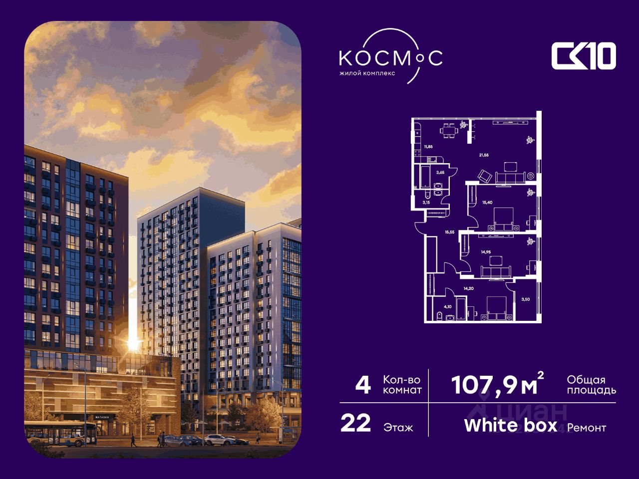 Продаётся 4-комнатная квартира в строящемся доме (Дом 1), срок сдачи: IV-кв. 2026, общей площадью 107.9 кв.м., на 22 этаже. Новый жилой комплекс ''Космос'' от группы компаний ''СК10'' расположен по адресу: г. Ростов-на-Дону, по ул. Красноармейская.