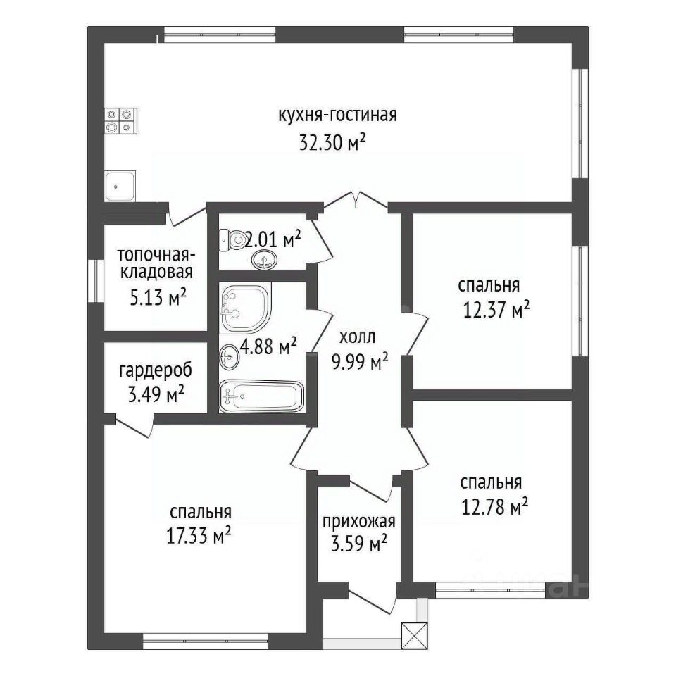 Этот дом станет идеальным местом для комфортной жизни. Внутри вас ждут три уютные изолированные спальни, просторная кухня-гостиная площадью 32 м², два современных санузла, котельная и гардеробная. Просторная кухня-гостиная — это сердце дома, где можно собираться всей семьей и проводить время с друзьями.