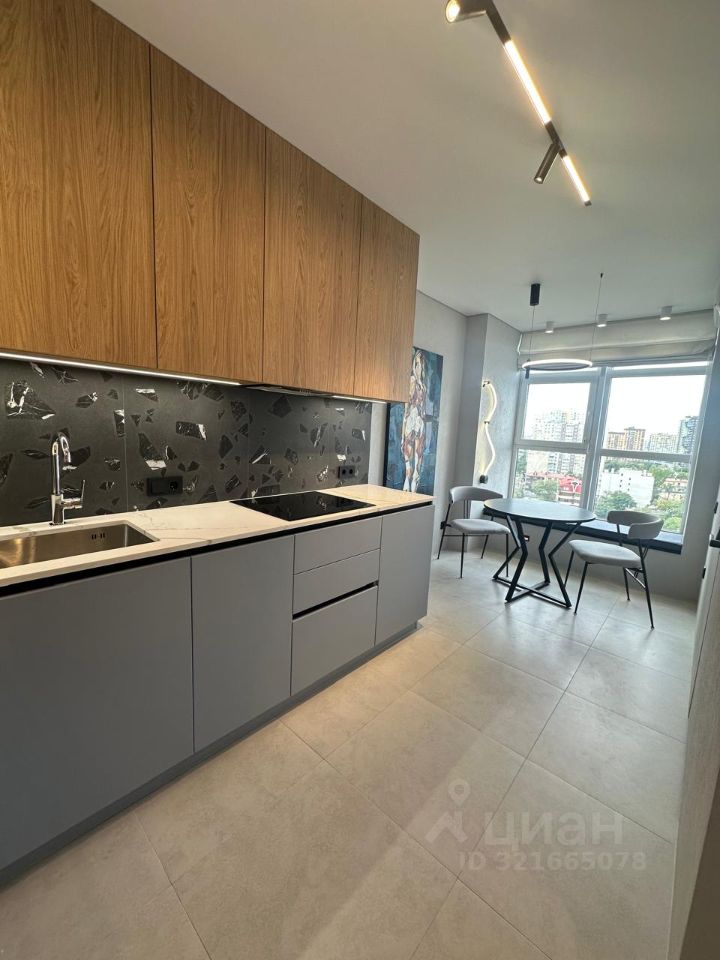 Просторная кухня-гостиная, со встроенной кухней, полностью укомплектованной техникой, диваном, обеденной зоной, витраж с широким подоконником и зоной отдыха, изолированная спальня, со встроенным просторным шкафом, с панорамным остеклением, большой встроенный шкаф в прихожей, полностью укомплектованный санузел, с подвесной тумбой, зеркалом, шкафом, ванна, стиральная машинка. Квартира полностью укомплектована. В ремонте использовались самые современные тенденции в дизайне, теневой плинтус, встроенные смесители, треки, кварцевые подоконники, столешница, стол из кварца, скрытые двери, высотой 2,3 м. Использовались только качественные современные материалы, испанская плитка и сантехника, потолки гипсокартон, и натяжной, множество вариантов освещения, покраска и стильная структурная штукатурка. Новый элитный комплекс, закрытый двор, детская и спортивная площадка, подземная парковка, консьержи, видеонаблюдение, рядом парк, Пушкинская, с ресторанами и зонами отдыха, рядом вся инфраструктура. На территории торговый центр, с бассейном.