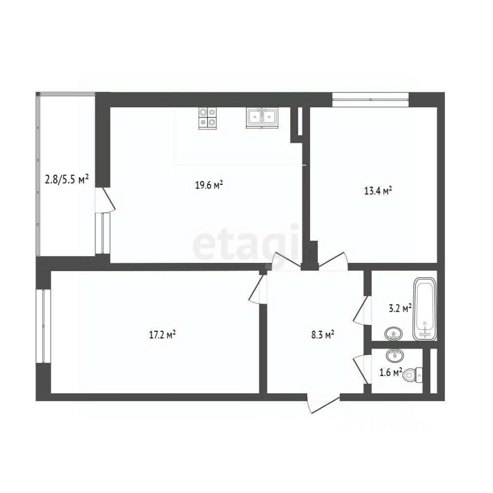 Продается 2-комнатная квартира площадью 63,2 м² с просторной кухней 19,6 м². Это новая квартира, в которой никто не жил, и она готова к заселению сразу.