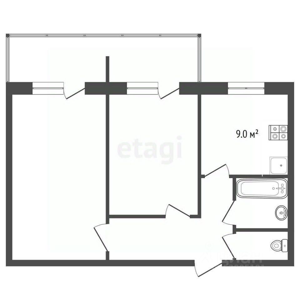 Уютная 2-комнатная квартира (47.4 м²) в хорошем состоянии