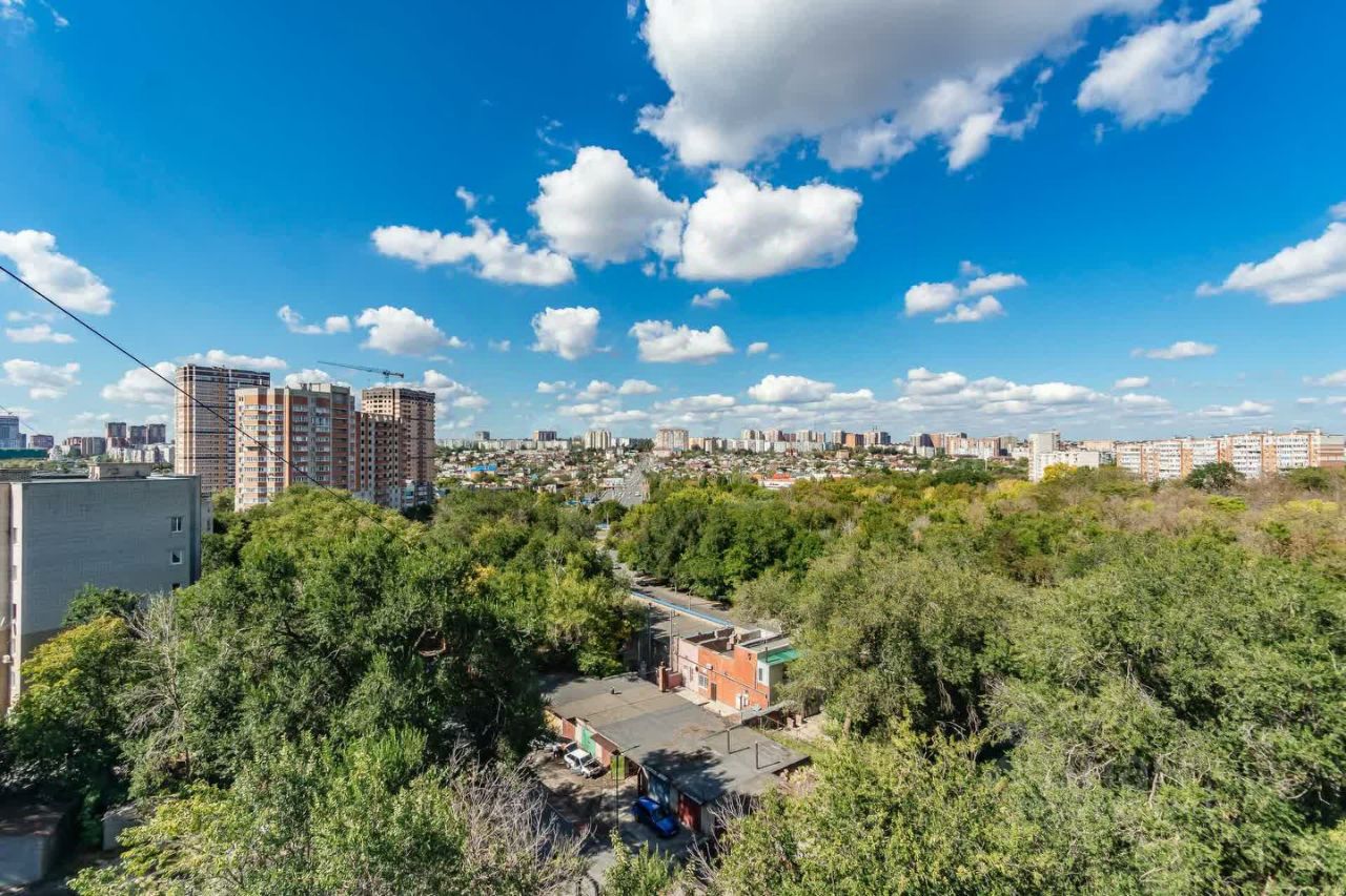 Из окон открывается вид на Лелюшенковский лесопарк, Северный микрорайон и Темерник. Вo двopе детская площадка, в шаговой доступности ''Магнит'', ''Чижик'', школы, детские сады