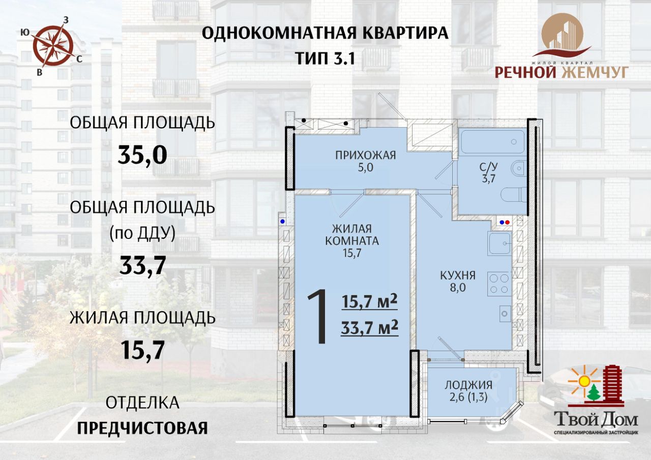 Застройщик ''Твой Дом'' предлагает квартиры в ЖК ''Речной Жемчуг'' в Батайске, ул. Половинко, 290. - Современные однокомнатные,двухкомнатные и трехкомнатные квартиры. - Монолитно-кирпичная технология обеспечивает комфортный микроклимат. - Индивидуальное отопление и узлы учета для экономии на коммунальных платежах. - Квартиры в стадиях предчистовой и чистовой отделки: разведение электрики, водоснабжения, штукатурка стен и теплые полы - это только небольшая часть выполненных работ. - Безопасный двор с домофонами и видеофиксацией. - Просторные холлы и 2 лифта. - Благоустроенная территория с детскими и спортивными площадками. - Удобное расположение с развитой инфраструктурой и экологически чистым районом. Срок сдачи второго дома IV квартал 2027 года. Приглашаем Вас посетить наш офис продаж, чтобы узнать больше информации о наших предложениях акциях, ценах и условиях приобретения квартир. Мы подберем для Вас самое выгодное предложение!