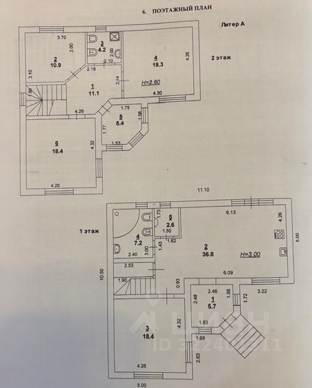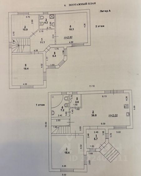Два полноценных этажа, два санузла (планировка прилагается).