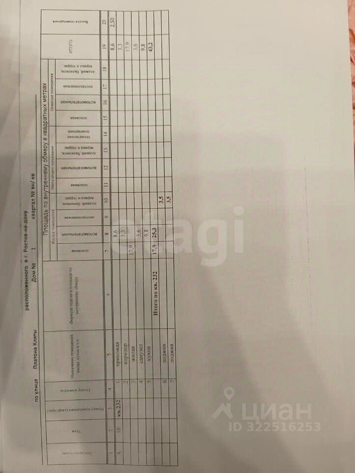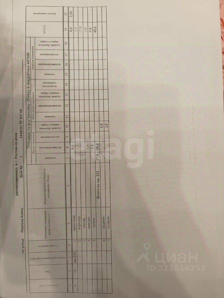 Площaдь кваpтиpы: 43,2 м²