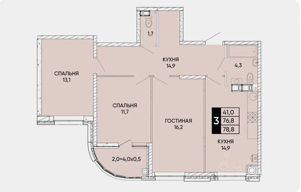 Общая площадь 79м2.