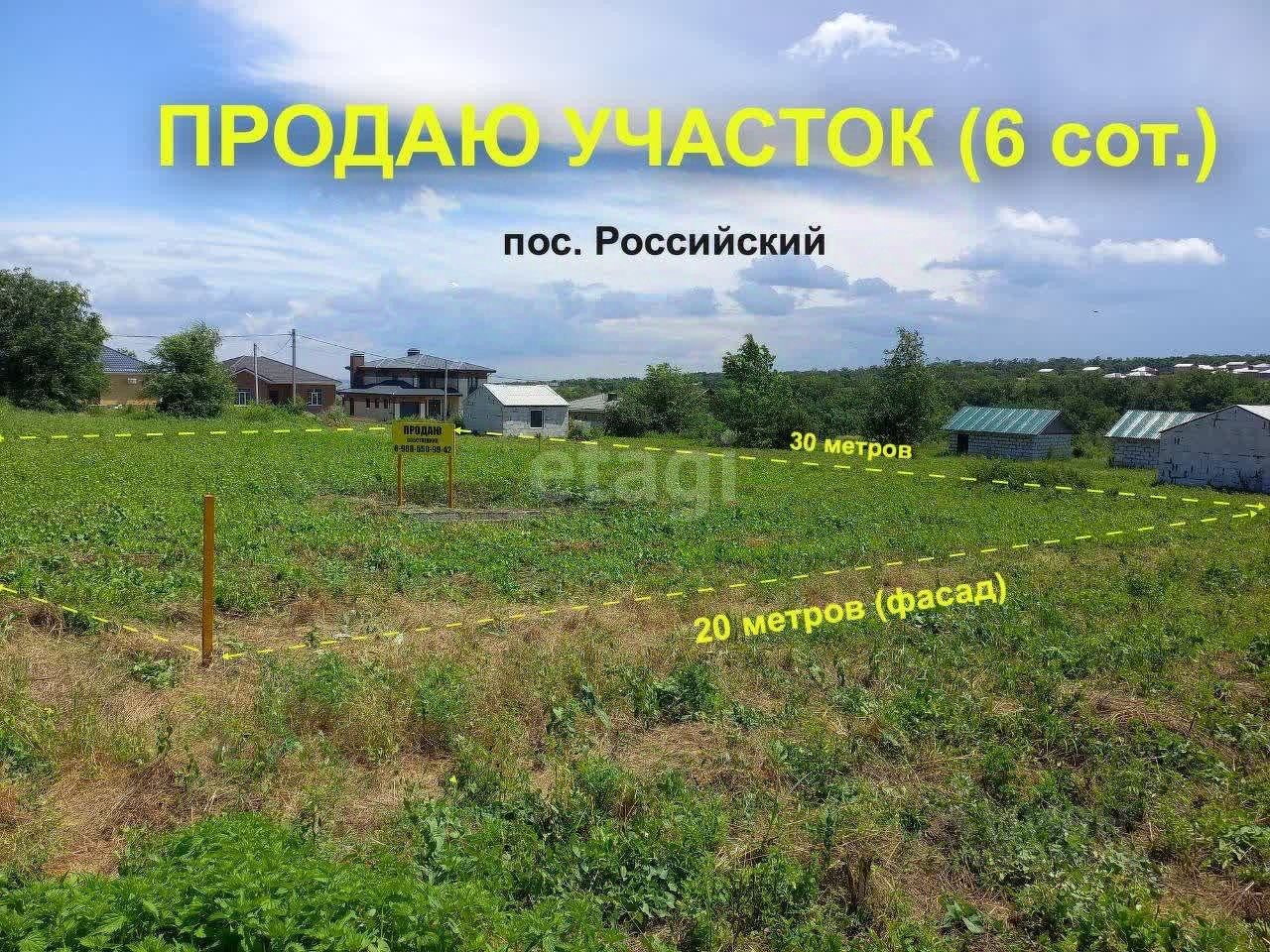 Вашему вниманию представляется шикарный участок, расположенный в Аксайском районе, п. Российский В поселке представлена развитая инфраструктура: - находятся продуктовые магазины - аптеки - на стадии завершение строительство школы - круглогодичный транспорт - спорт комплекс - мед пункт Непосредственная близость от города (13 км), всего 17 минут и Вы уже в городе.