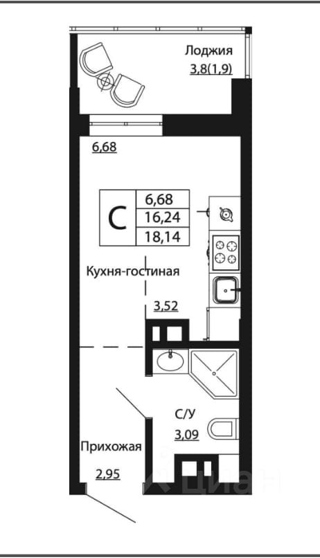 продам 1-к, Текучева, 370/32 990 000 ₽