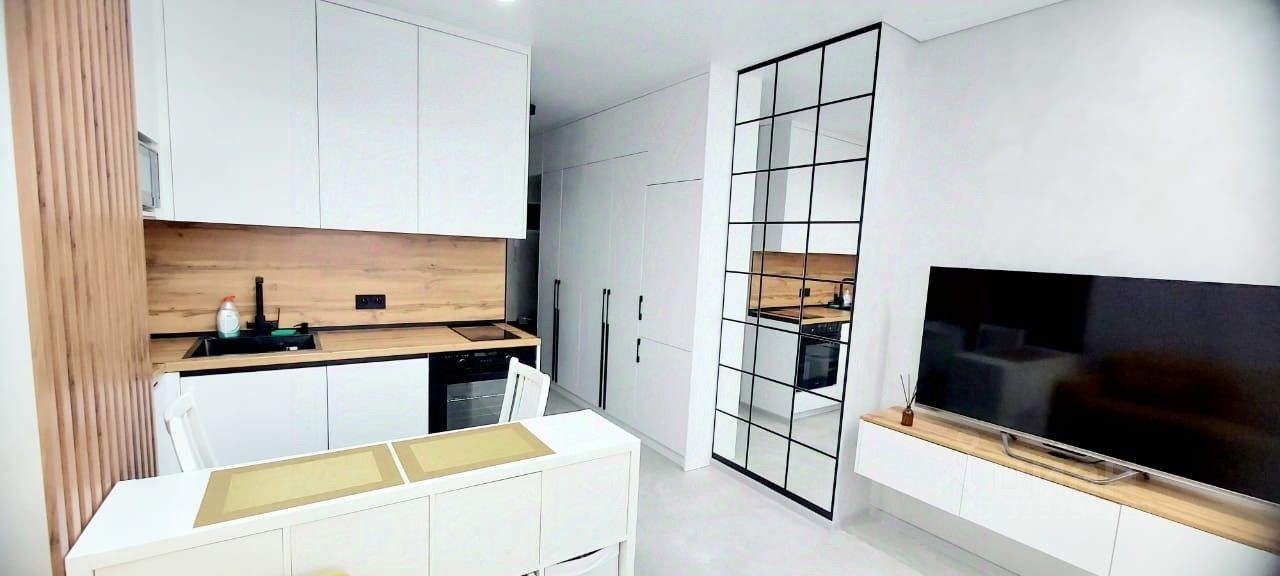 с современным дизайнерским ремонтом, светлая и уютная.