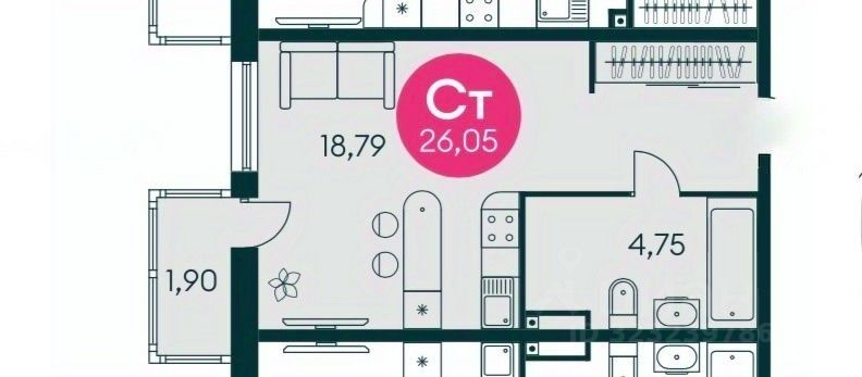 Удобная планировка с просторной комнатой. Сан узел совмещенный.
