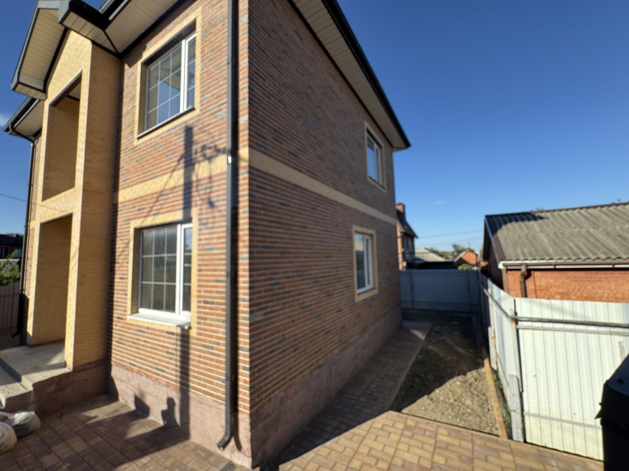 Шикарный дом в частном секторе (не сады). Два этажа, выполнена все работы по предчистовой отделке: стены готово под поклейку обоев либо покраску, санузлы в кафеле, установлены фильтры очистки воды, сигнализация. На первом этаже гостевая комната, санузел, кухня, зал, на втором этаже три спальни, санузел, в цокольном этаже можно расположить игровую, спортзал или кабинет. Во дворе постройка под баню и мангальная зона.
