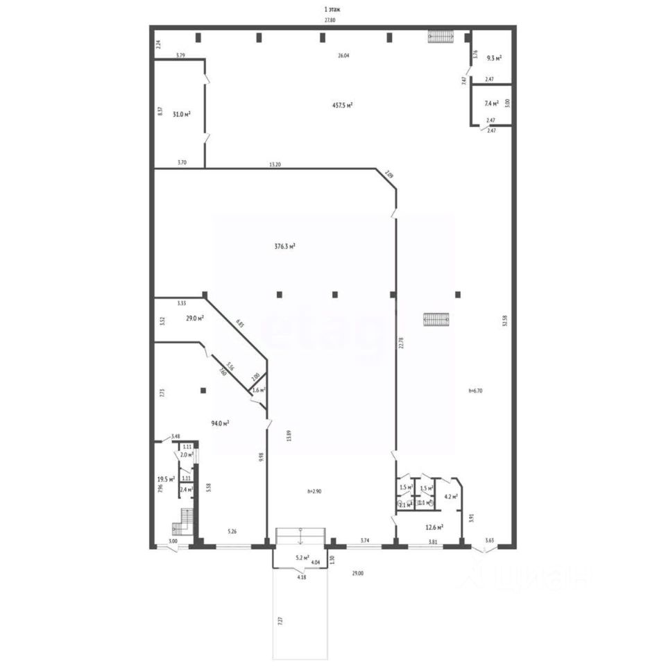Высота потолков 4-6,7 метров.