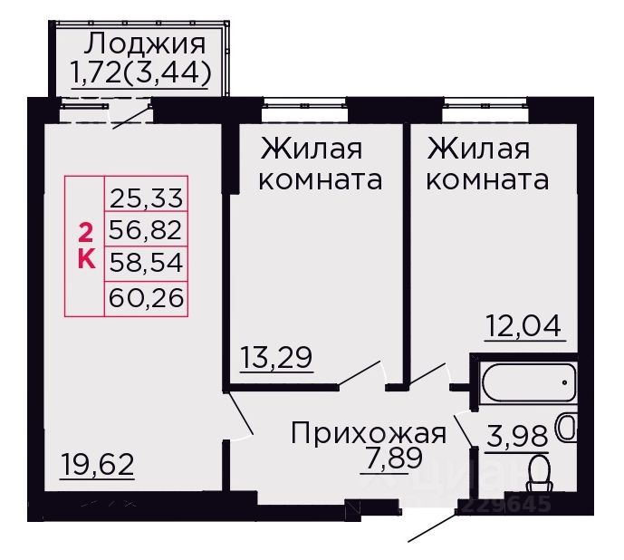 Общая площадь58,54 м2