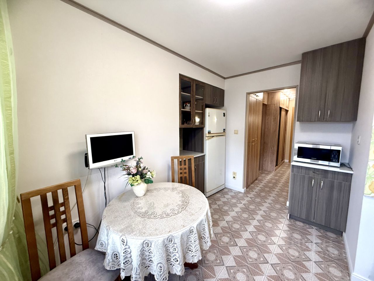 В квартире есть всё необходимое для комфортного проживания. Есть 2 спальный диван и кресло - кровать . Просторная кухня оборудована современной мебелью и техникой, включая холодильник, духовой шкаф , микроволновую печь , телевизор . Имеется фильтр для питьевой воды.
