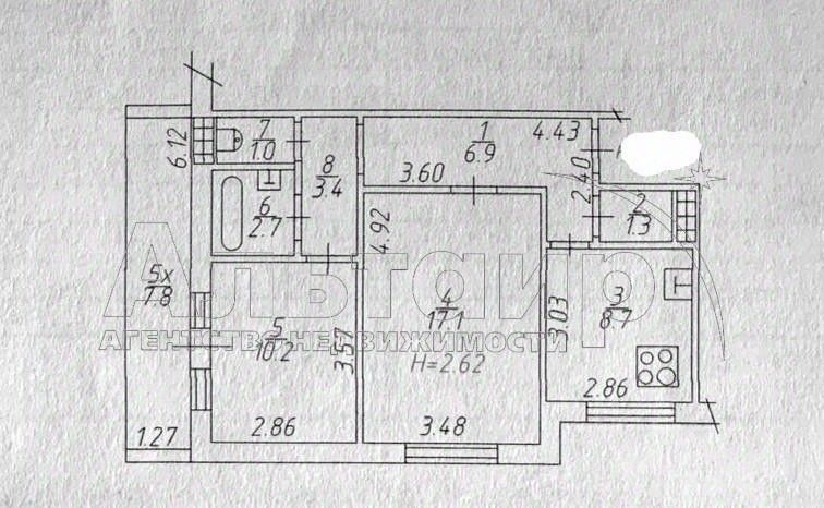 Есть вместительная кладовка, ее можно объединить с кухней и кухню расширить до 12кв.м.
