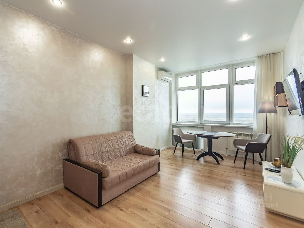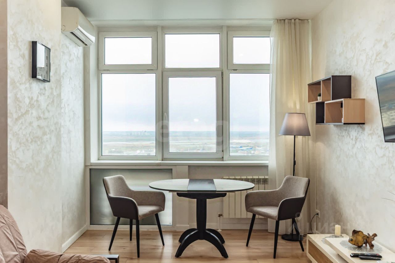 Дом 2018 года постройки. Квартира расположена на 27-м бизнес-этаже, высота потолков 3,2 м, большие панорамные окна с видом на реку Дон.