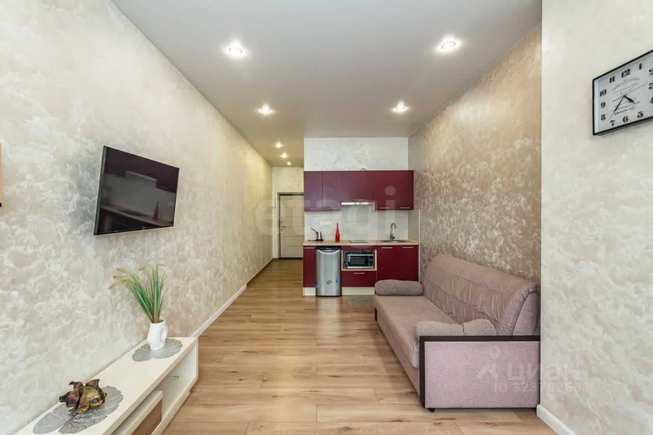 Продаётся видовая студия в ЖК ''Белый ангел''. Общая площадь квартиры 30 кв.м, в том числе жилая 25 кв.м.