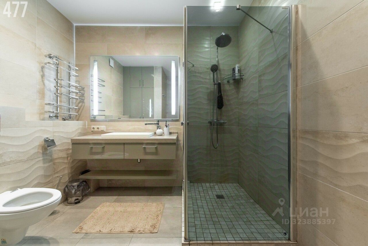 • на входе в квартиру удобная зона прихожей с плиткой на полу ( легко поддерживать чистоту) и вместительным шкафом-купе для верхней одежды. • очень большая ванная комната с огромной душевой, так же много места хранения в зоне умывальника, есть шкаф в нише где есть доступ к трубам, можно хранить бытовую химию и спрятана стиральная машинка.