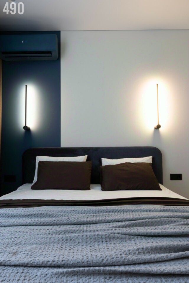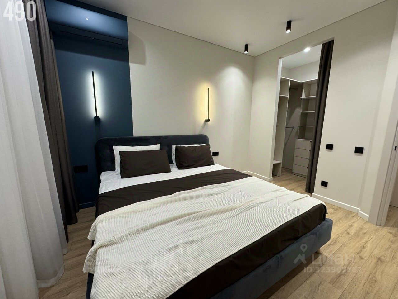 • двуспальная кровать с матрасом 180 см • гардеробная с встроенной мебелью и комодом с бесшумными доводчикам • сплит в цвет стен • блэкаут шторы с тюлем на заказ • лоджия с панорамным остеклением, с освещением и розетками- можно использовать как кабинет или зону отдыха