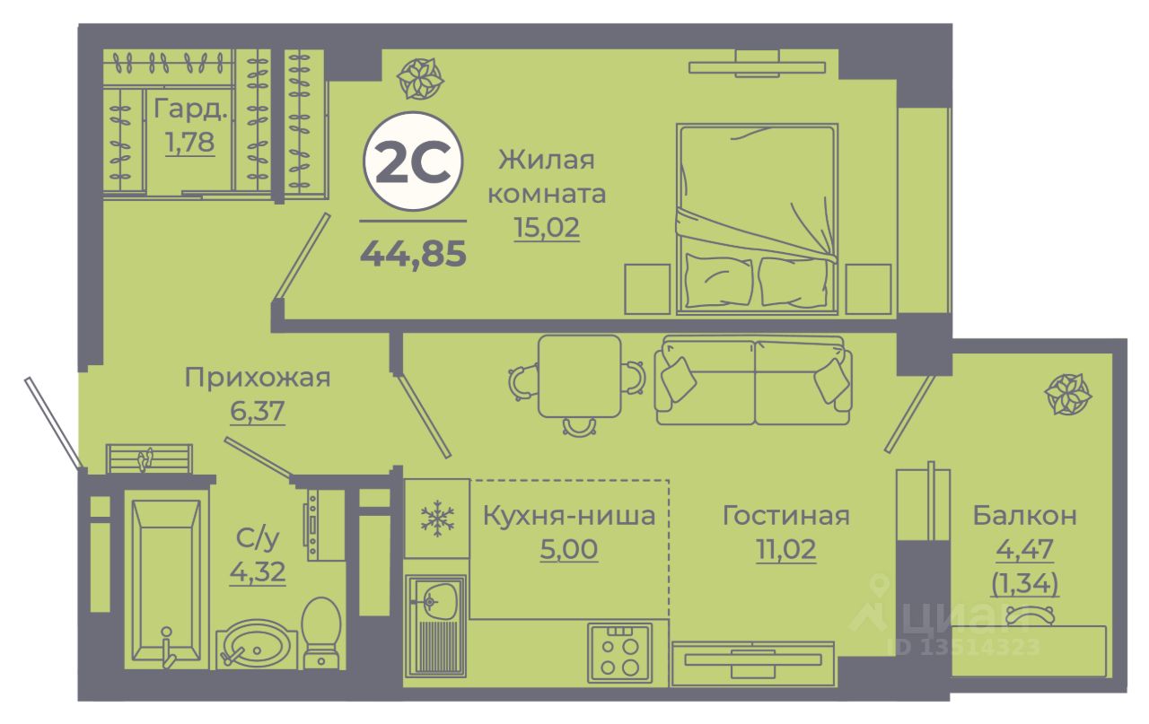 продам 2-к квартира5 382 000 ₽