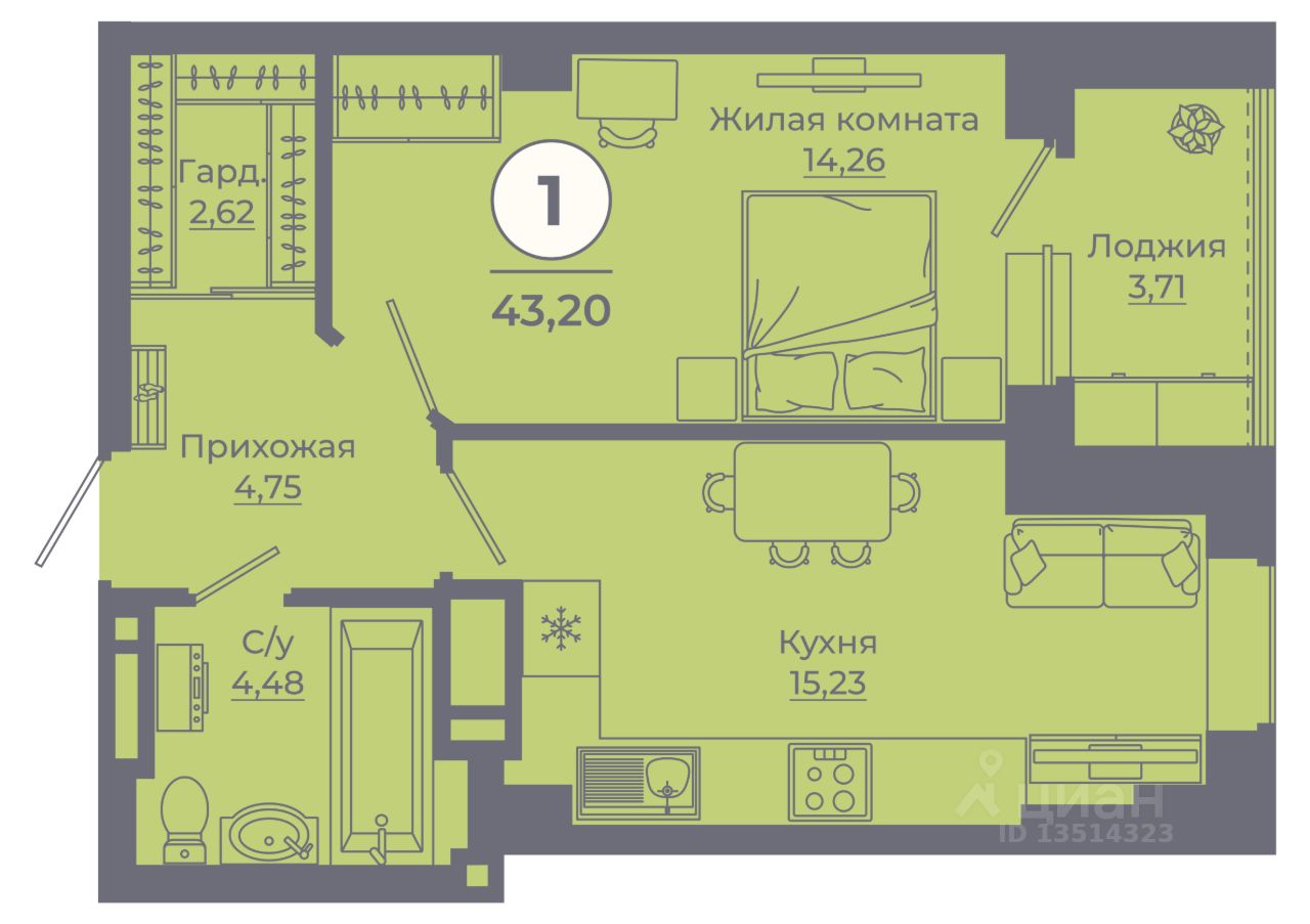 продам 1-к квартира5 347 500 ₽
