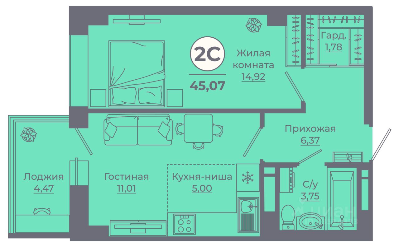 продам 2-к квартира5 936 040 ₽