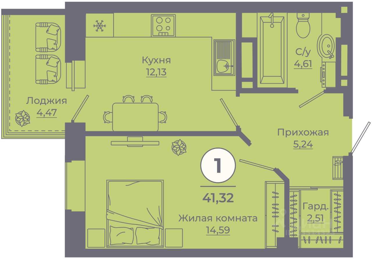 - Общая площадь41 м²