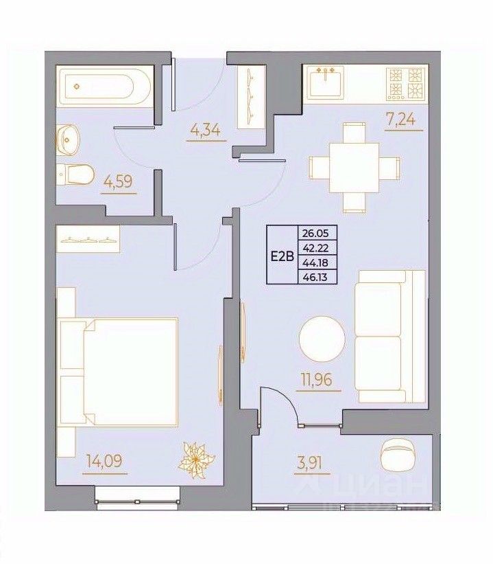 Общая площадь46,13 м2