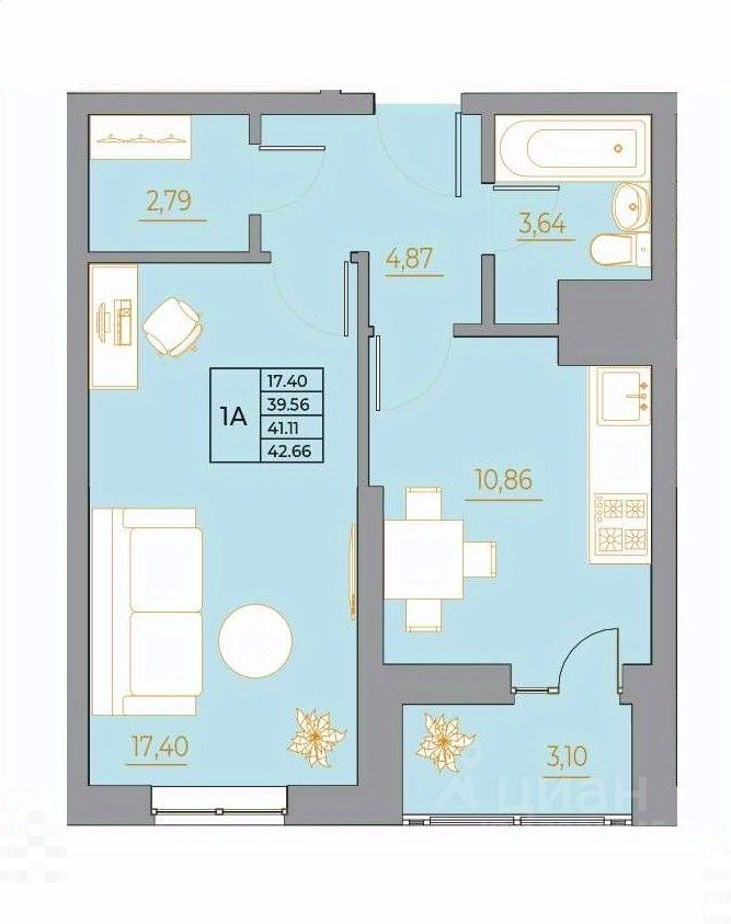 Общая площадь42,66 м2