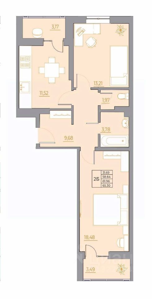 Общая площадь65,3 м2