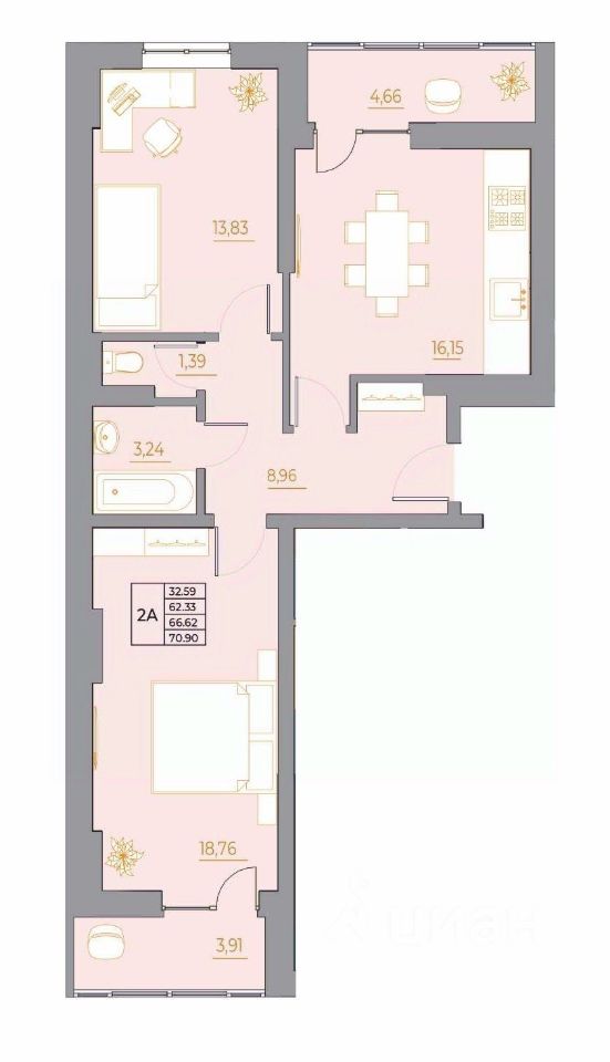 Общая площадь70,9 м2
