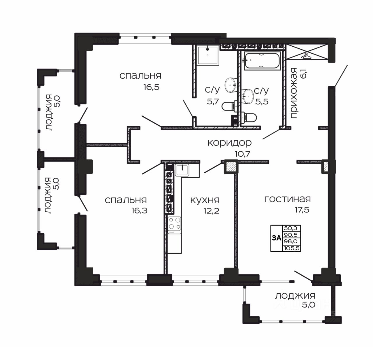 Планировка 3 изолированные комнаты мастер-спальня (со своим с/у) 2 санузла 3 лоджии по 5 кв.м. 3 этаж