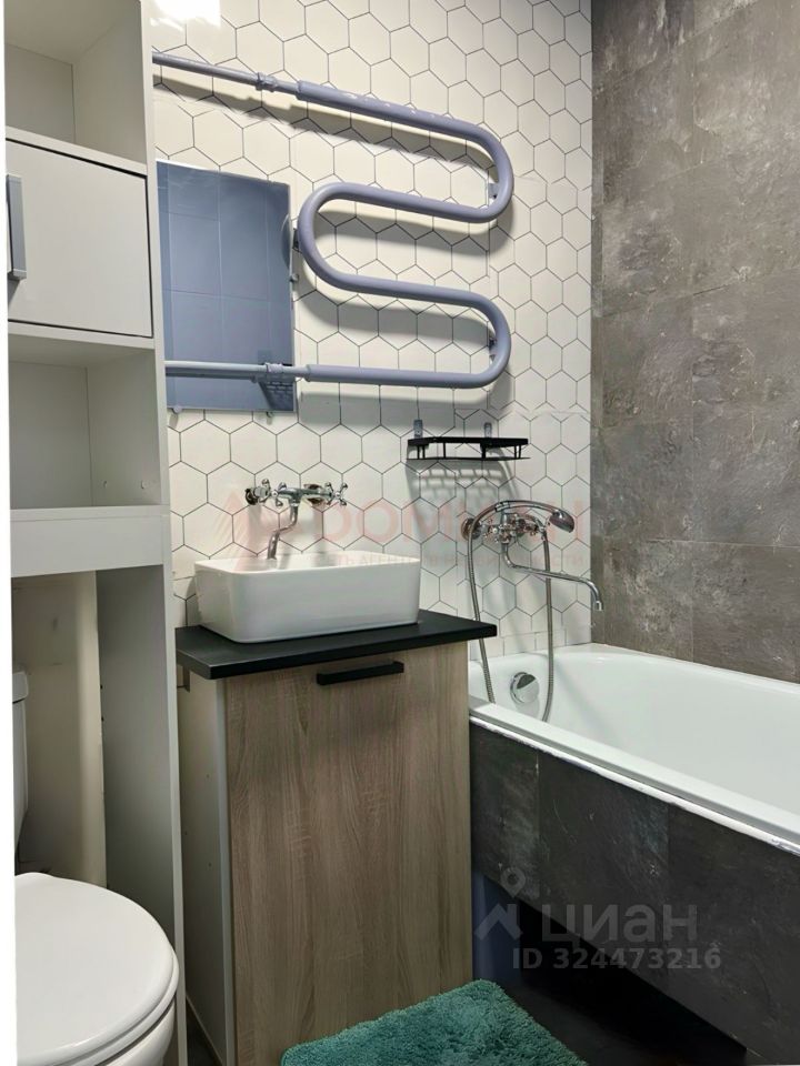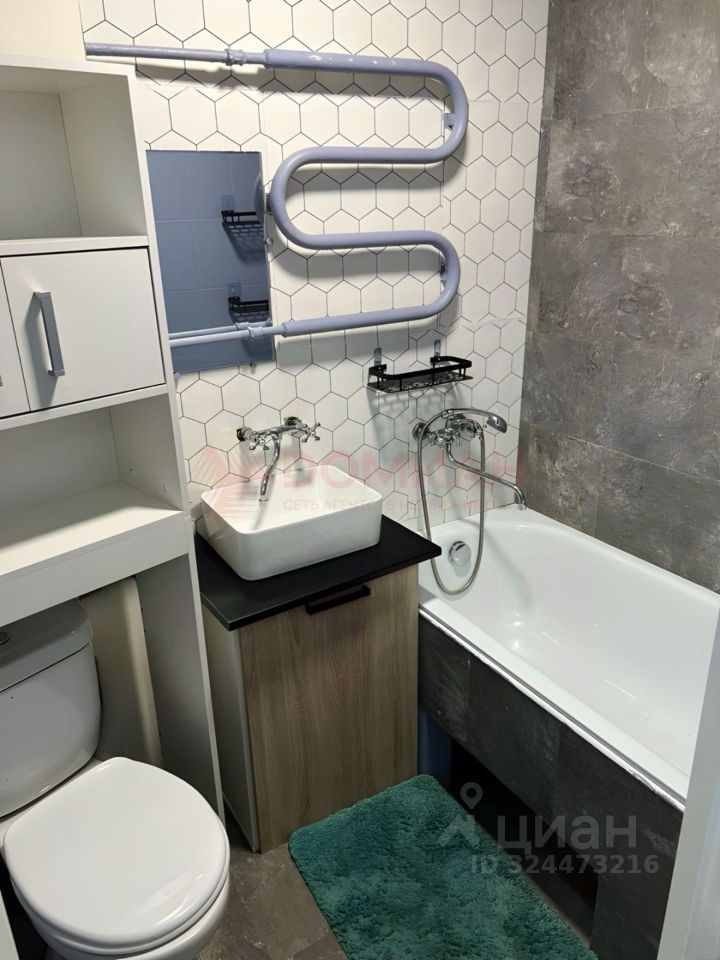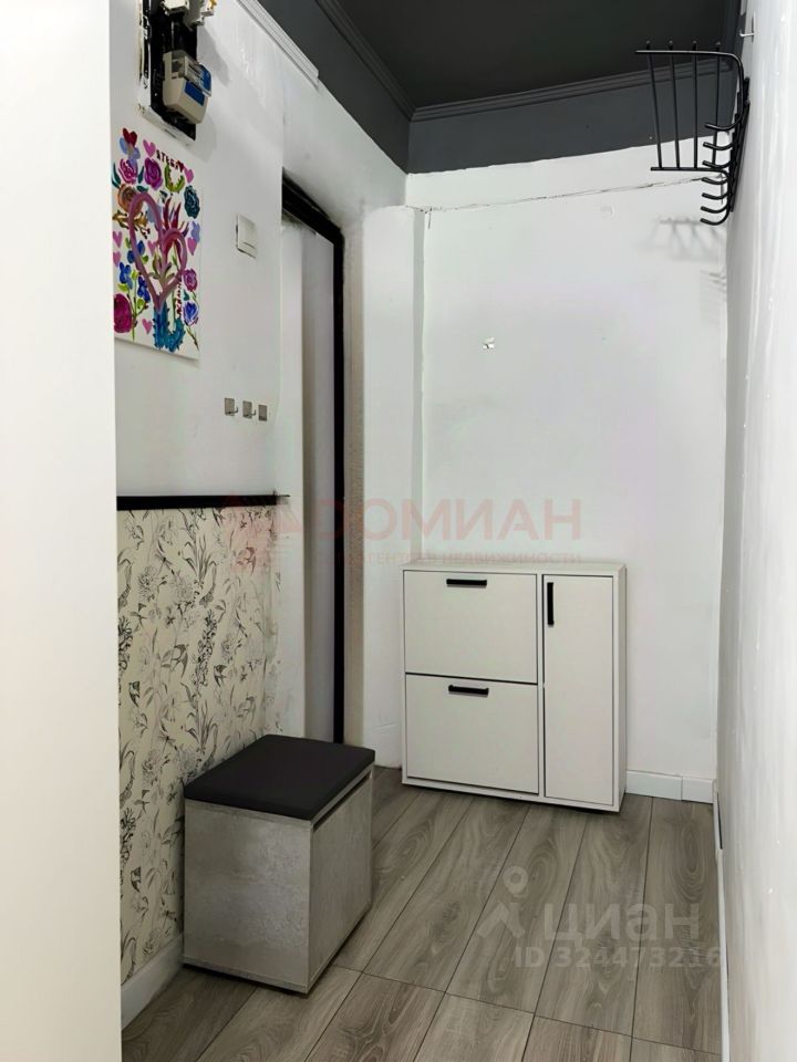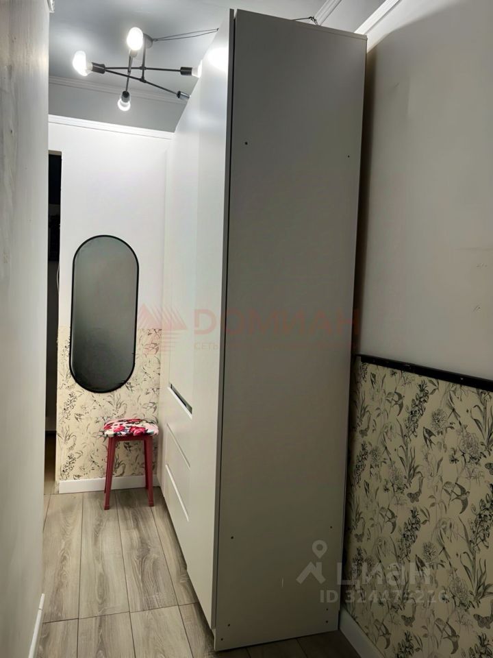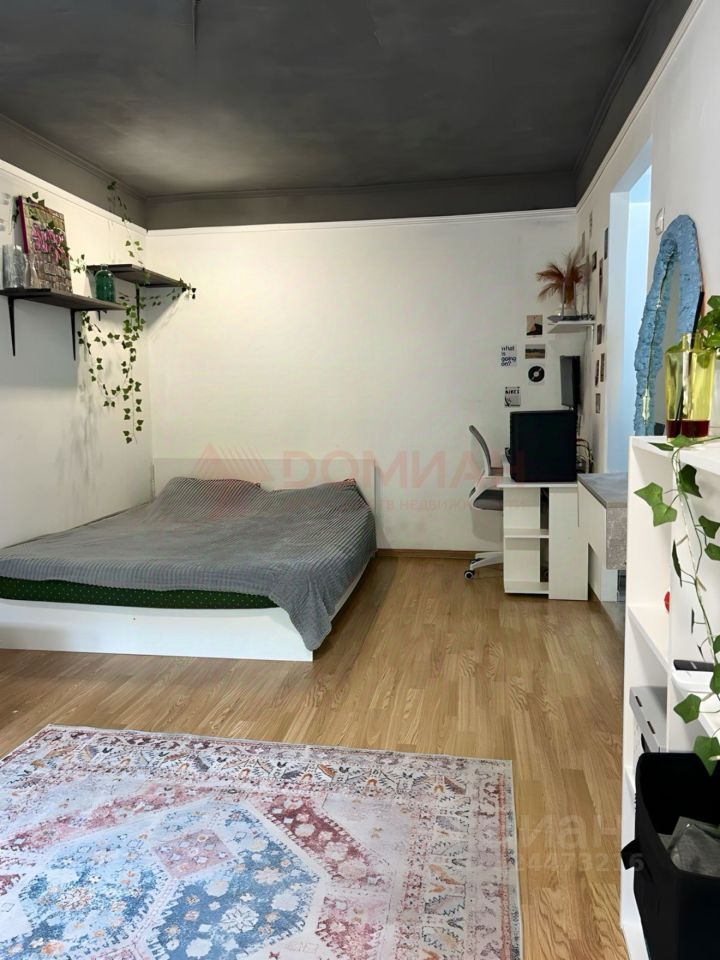 В квартире выполнен качественный ремонт в современном стиле. Комната зонирована на гостиную и спальню с большой кроватью. Мебель и техника остаются частично.