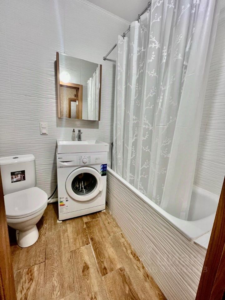 В квартире сделан современный евроремонт. Просторная комната и кухня полностью меблированы. В наличии вся необходимая техника: кондиционер, холодильник и стиральная машина. Совмещенный санузел оборудован ванной, что обеспечит комфортное проживание. Имеется гардеробная комната.
